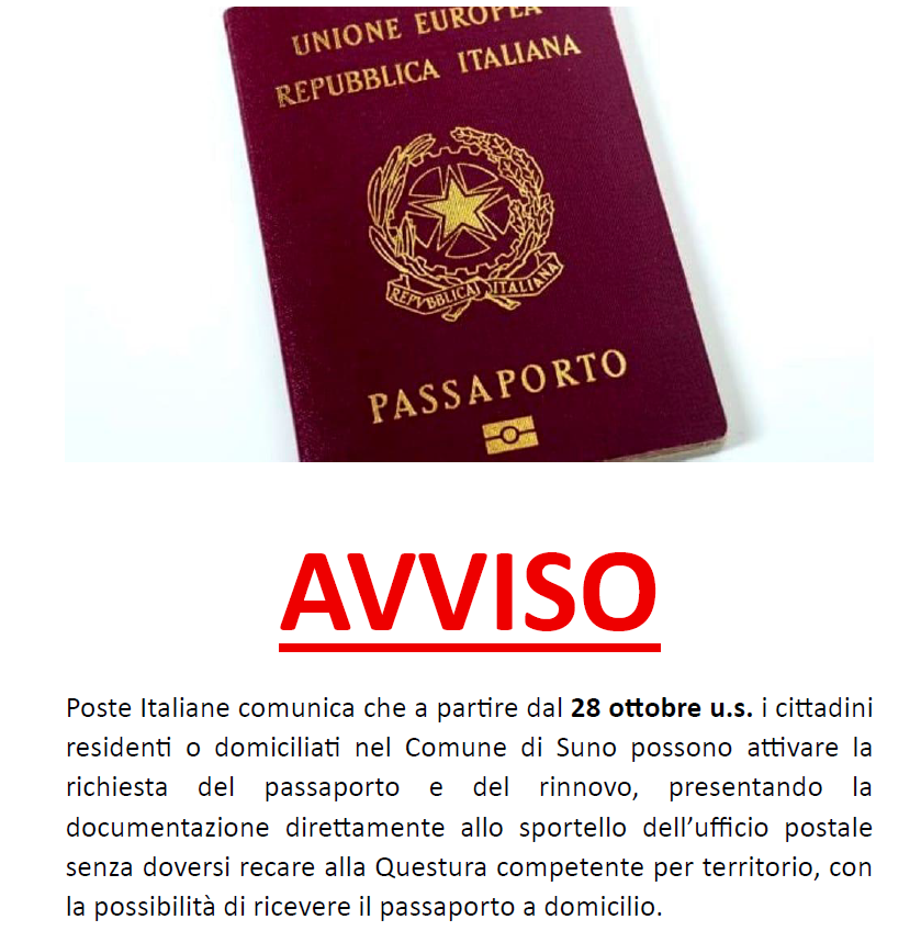Nella sezione "Documenti" è pubblicata una Comunicazione, trasmessa da Poste Italiane, con le indicazioni da seguire, per il rilascio o il rinnovo del Passaporto.